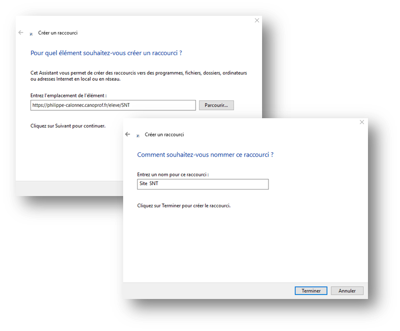 Raccourcis pour accéder directement au site 2nde SNT