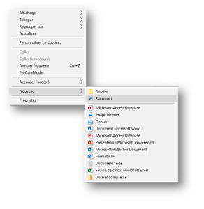 Pour faciliter l'accès aux modules d'activité, vous allez créer un raccourci sur le bureau de votre ordinateur Pour cela sur le bureau de votre poste cliquez droit sur une zone libre puis sélectionnez Nouveau > Raccourci