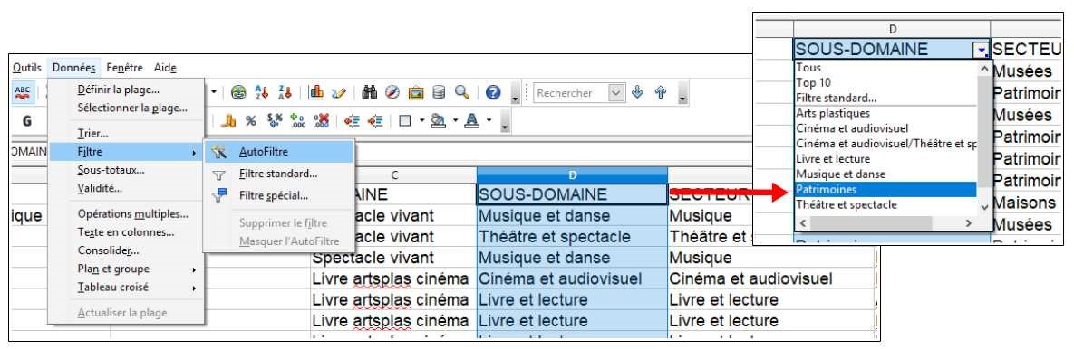 Utilisation de « Filtre standard » : | Utilisation de « Autofiltre » : |