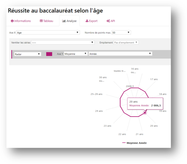 Sélectionnez l'onglet Analyse puis une représentation Radar pour l'Axe Y,