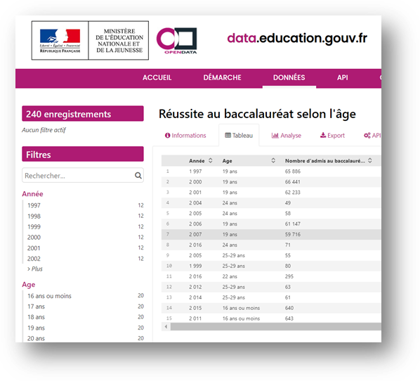 Sur la gauche de la fenêtre, vous avez la possibilité de filtrer les données.