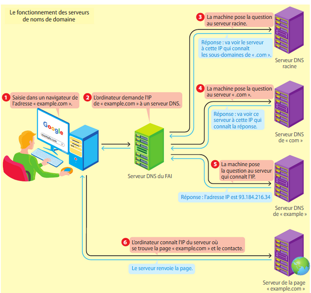 Pour s'adresser à une machine, il faut savoir où elle se trouve sur le réseau Internet et donc connaître son adresse IP. Comme il est impossible de connaître toutes les adresses IP, un annuaire permet d'accéder aux informations.